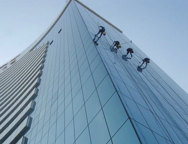 隨著現代文明的提高(gāo)、經濟的高速發展和人們生活水平的快速提高(gāo),越來越多的高樓大廈拔地而起,隨之而來的就是建築物外牆清洗行業的興起,外牆清洗業在我國已引起普遍(biàn)注意(yì)和(hé)重視(shì)。所(suǒ)有的高層建築物外牆,由於常年(nián)日曬(shài)和風吹雨打,以及大氣中有害的氣體和油煙等汙染(rǎn)和化學反(fǎn)應(yīng)的侵蝕,使(shǐ)得建築物(wù)外牆產生了汙垢和風化,既影響了建築物的(de)標致和市容,又損壞了(le)建築物(wù)。因此,清洗建築物的外(wài)牆(qiáng),不(bú)僅(jǐn)美(měi)化了環(huán)境,而且起到(dào)了保護建築物的(de)作用。精东天美麻豆果冻传媒的高空外牆清洗(xǐ)服務包括: